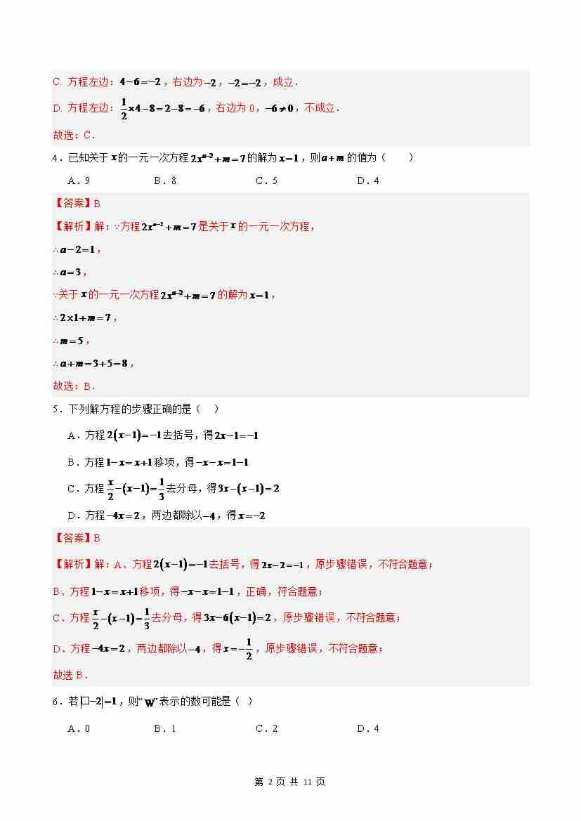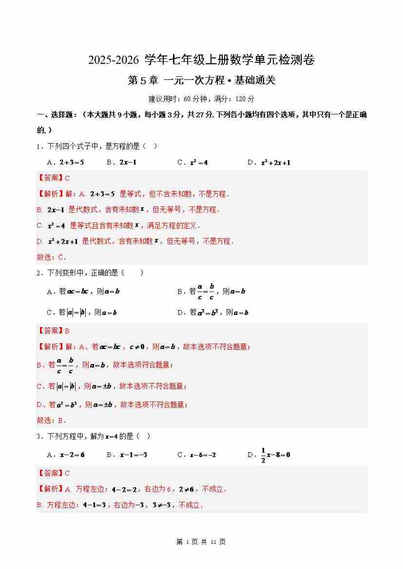 首页 > 全部 > 单元测试 > 七上数学第5章 一元一次方程测试·基础卷(解析版)