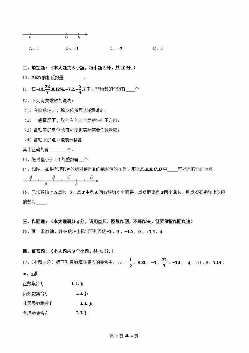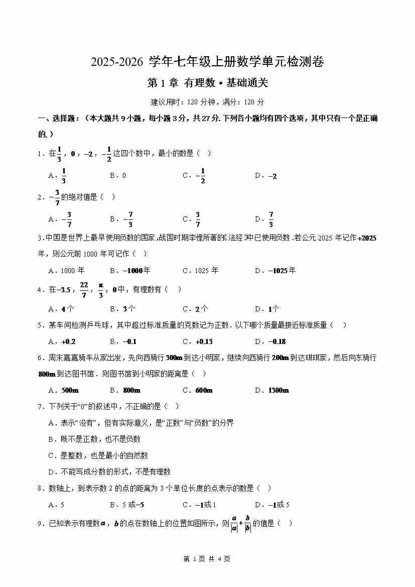 首页 > 全部 > 单元测试 > 七上数学第1章 有理数测试·基础卷(考试版A4)