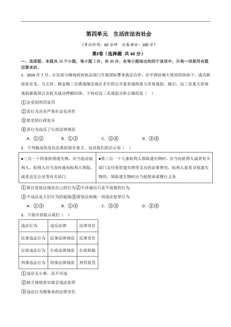 首页 > 全部 > 单元综合卷 > 4第四单元 生活在法治社会【A卷·提升卷】(学生版)