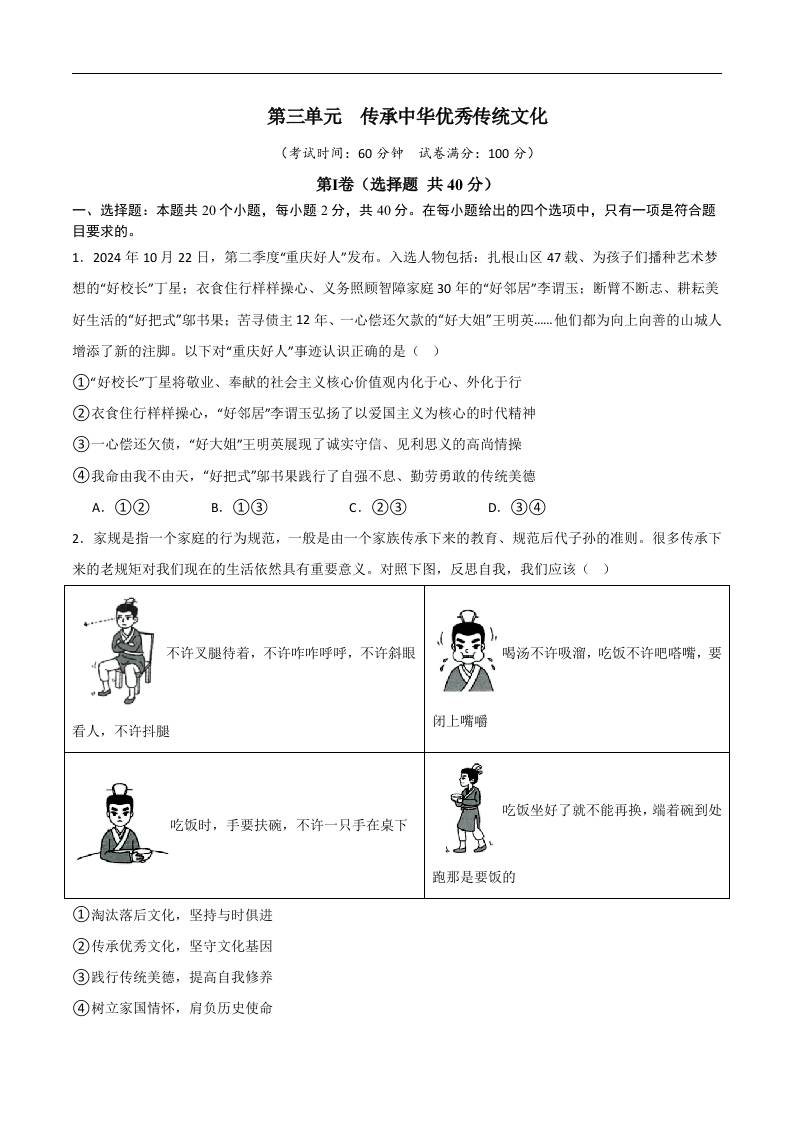 首页 > 全部 > 单元综合卷 > 3第三单元 传承中华优秀传统文化【A卷·提升卷】(学生版)