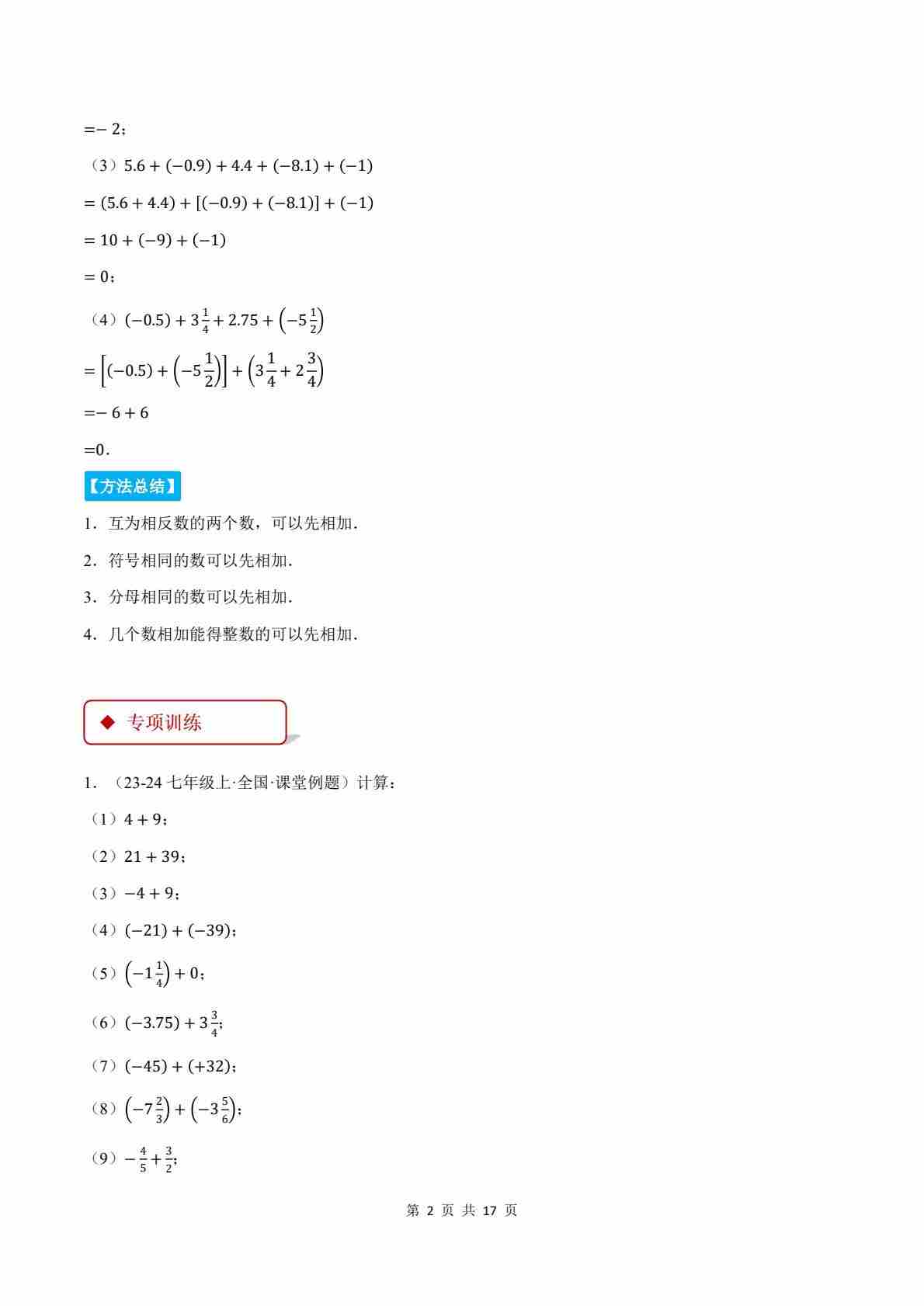 首页 > 全部 > 计算题专题 > 专题01 有理数的加法(计算题专项训练)(解析版)