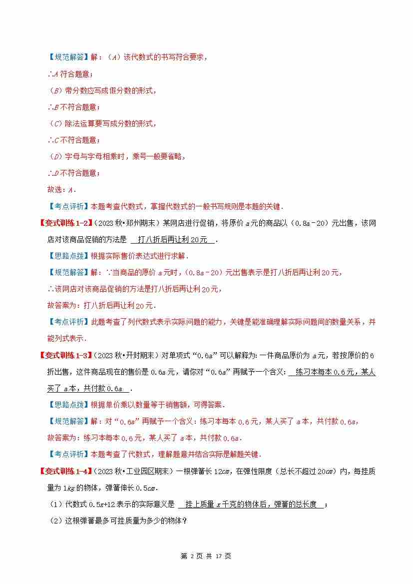 首页 > 全部 > 期末专项 > 专题03 代数式(易错必刷题32题5种题型专项训练)(解析版)