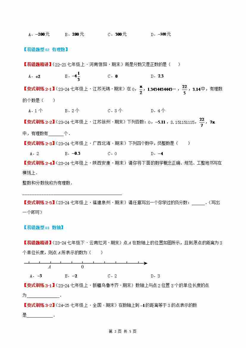 首页 > 全部 > 期末专项 > 专题01 有理数(易错必刷题36题5种题型专项训练)(原卷版)