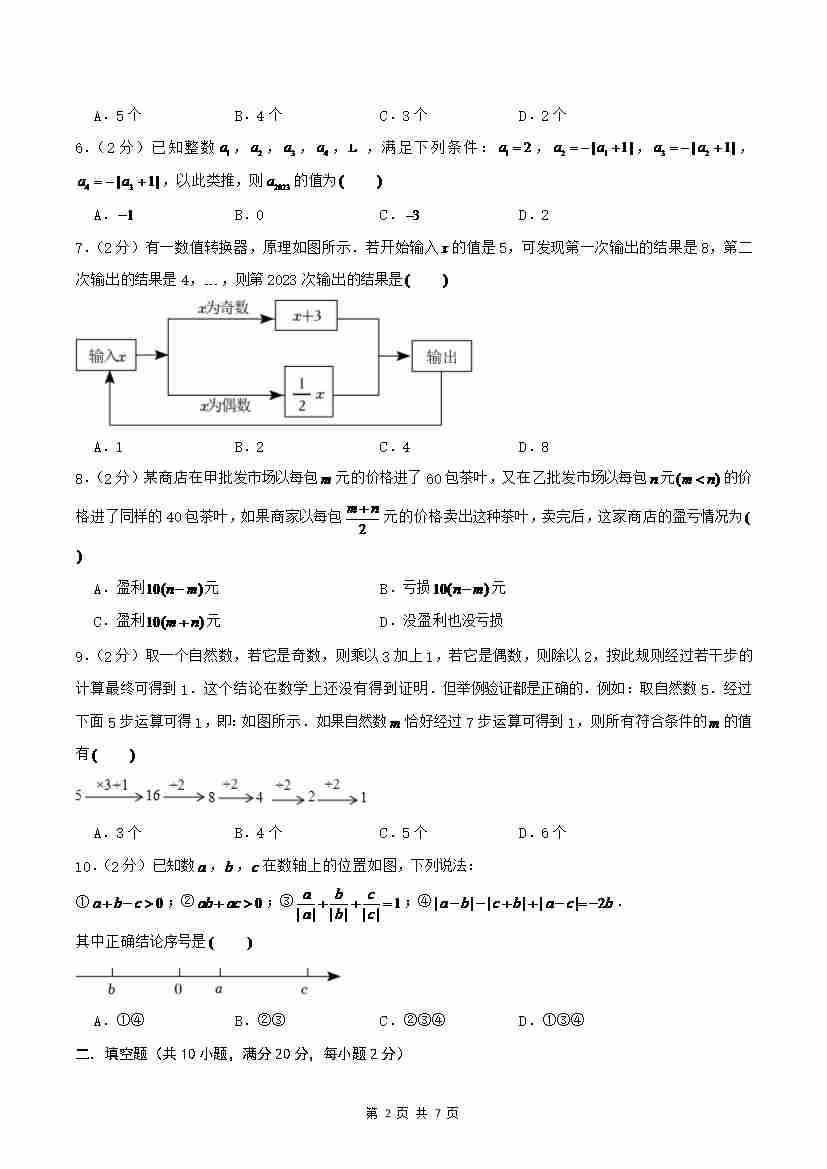 2024-2025学年青岛版七年级上学期(新教材)期中模拟试卷02(原卷版)