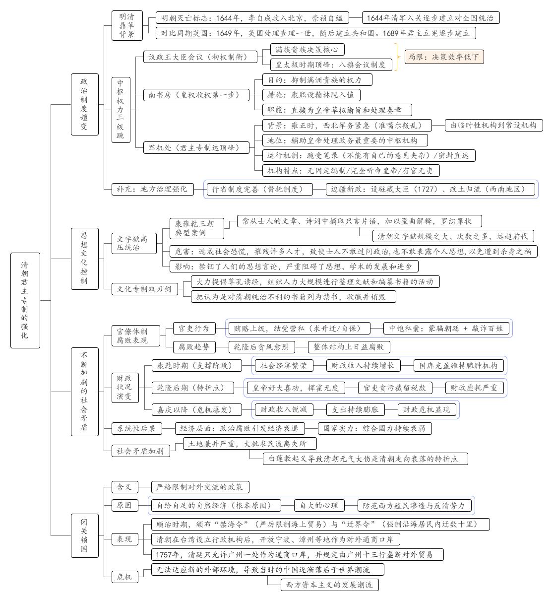 第19课 清朝君主专制的强化(思维导图pdf版)-【每课一图】初中历史思维导图(七年级·统编版2024)