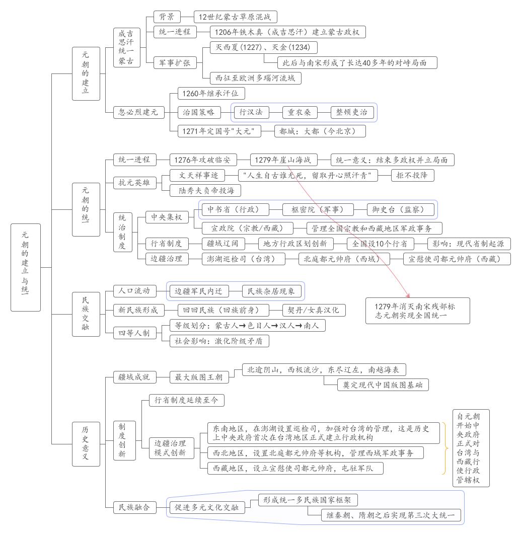 第11课 元朝的建立与统一(思维导图pdf版)-【每课一图】初中历史思维导图(七年级·统编版2024)