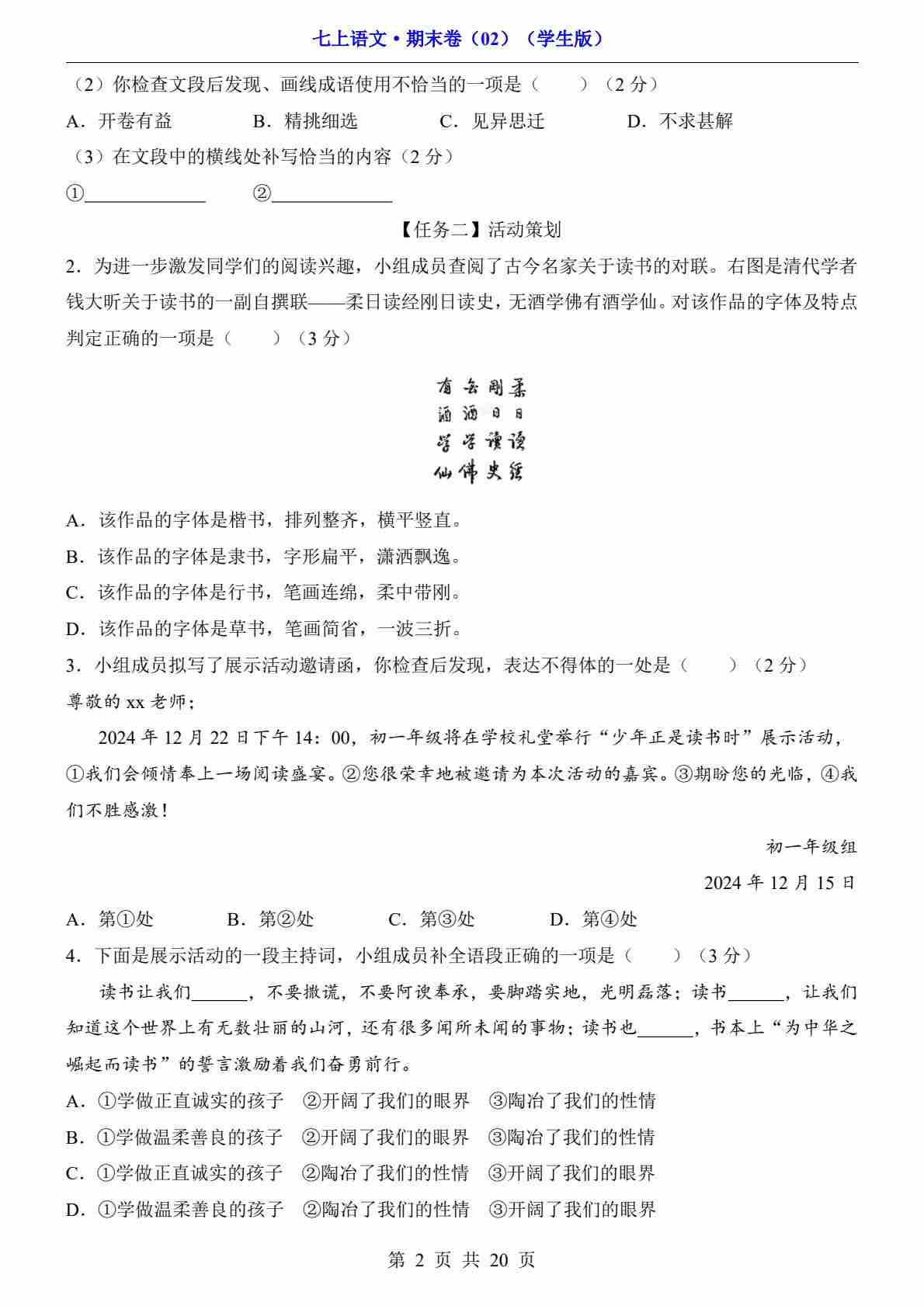 首页 > 全部 > 期末试卷 > 7上语文期末卷02【7上全册】