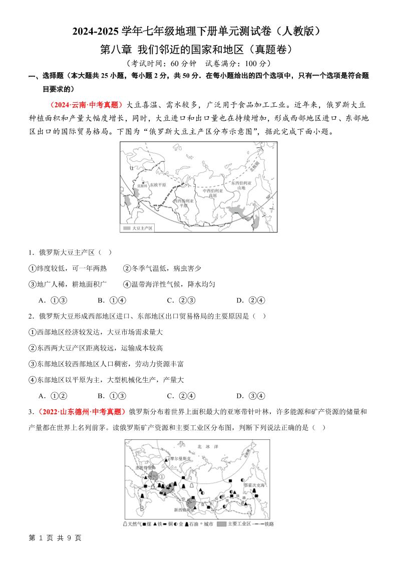 首页 > 全部 > 单元真题卷 > 2第八章 我们邻近的国家和地区【B卷·真题卷】(原卷版)