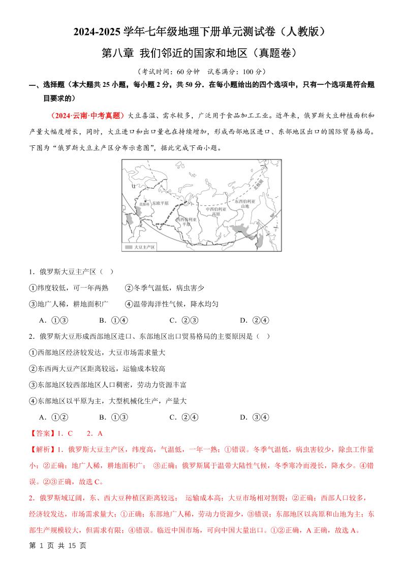 首页 > 全部 > 单元真题卷 > 2第八章 我们邻近的国家和地区【B卷·真题卷】(解析版)