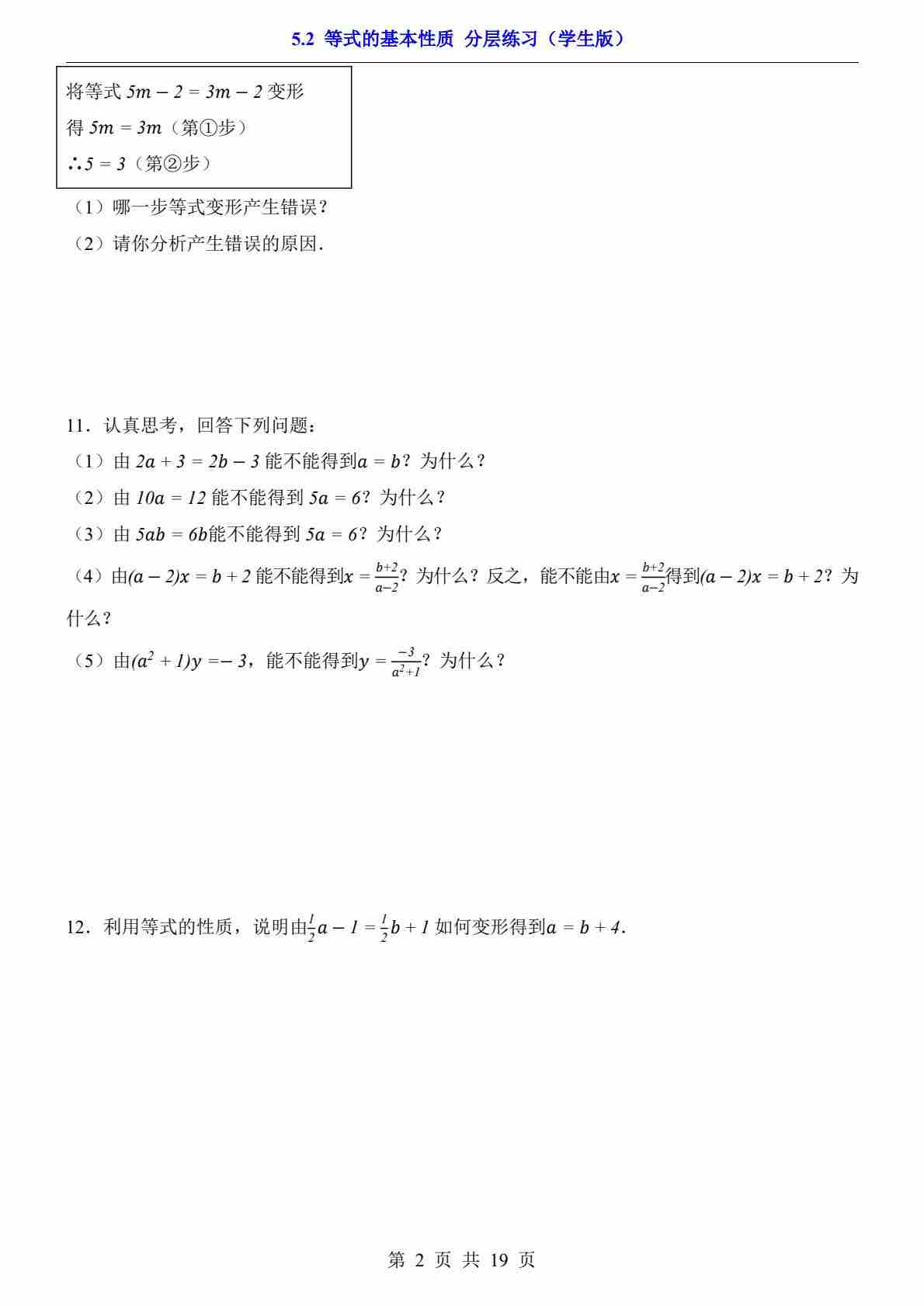 5.2 等式的基本性质---(分层练习)