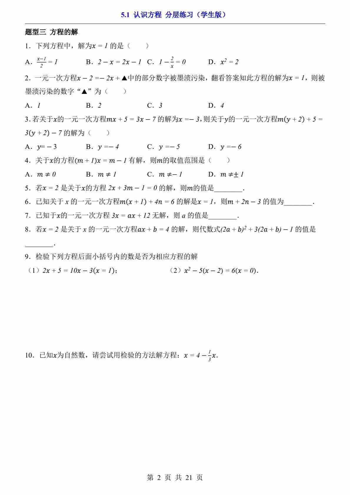 首页 > 全部 > 一课一练 > 5.1 认识方程---(分层练习)