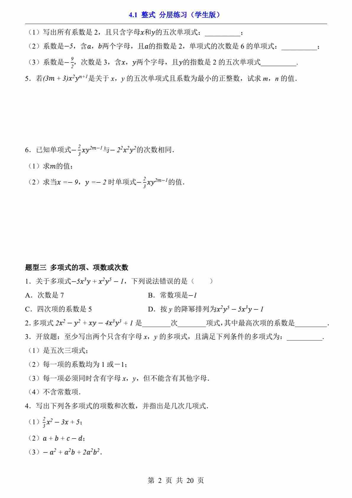 首页 > 全部 > 一课一练 > 4.1 整式----(分层练习)