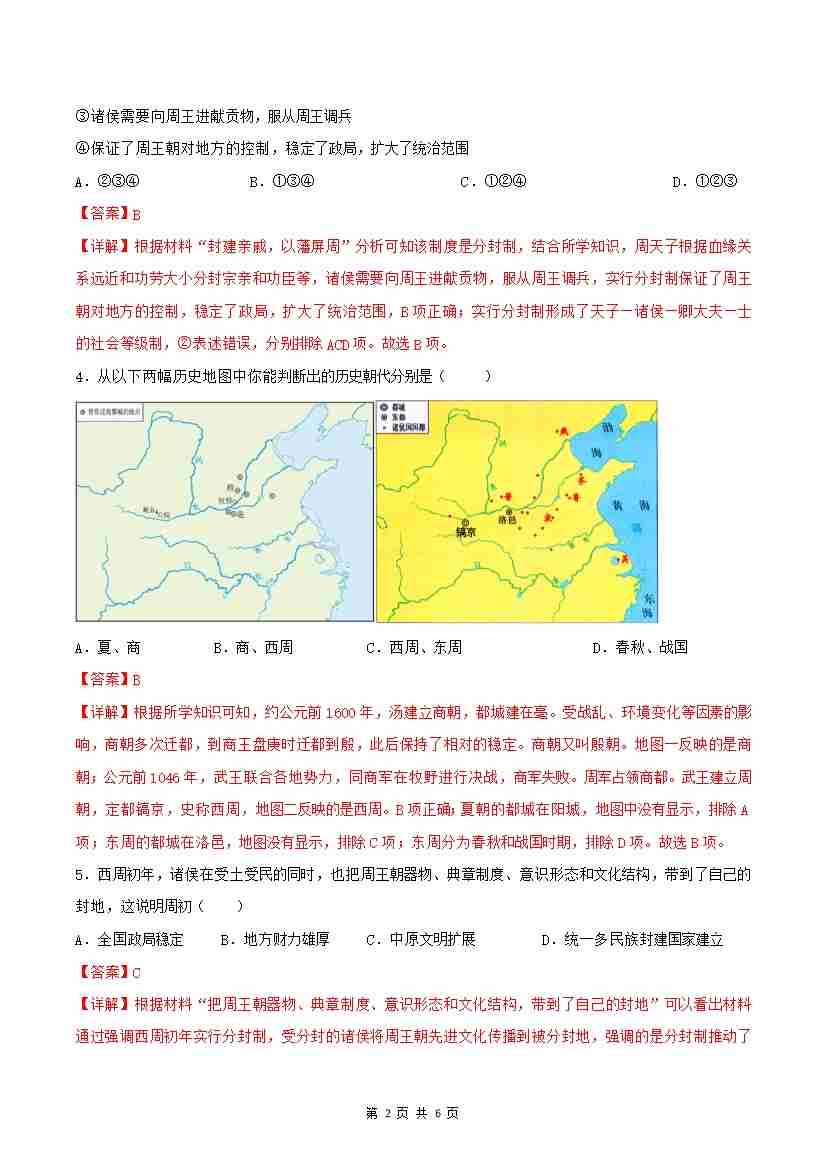 第4课 夏商西周王朝的更替(分层作业)(解析版)