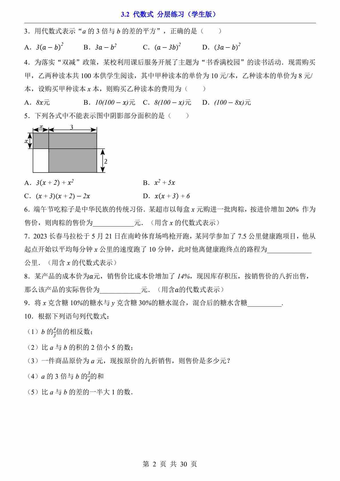 首页 > 全部 > 一课一练 > 3.2 代数式----(分层练习)