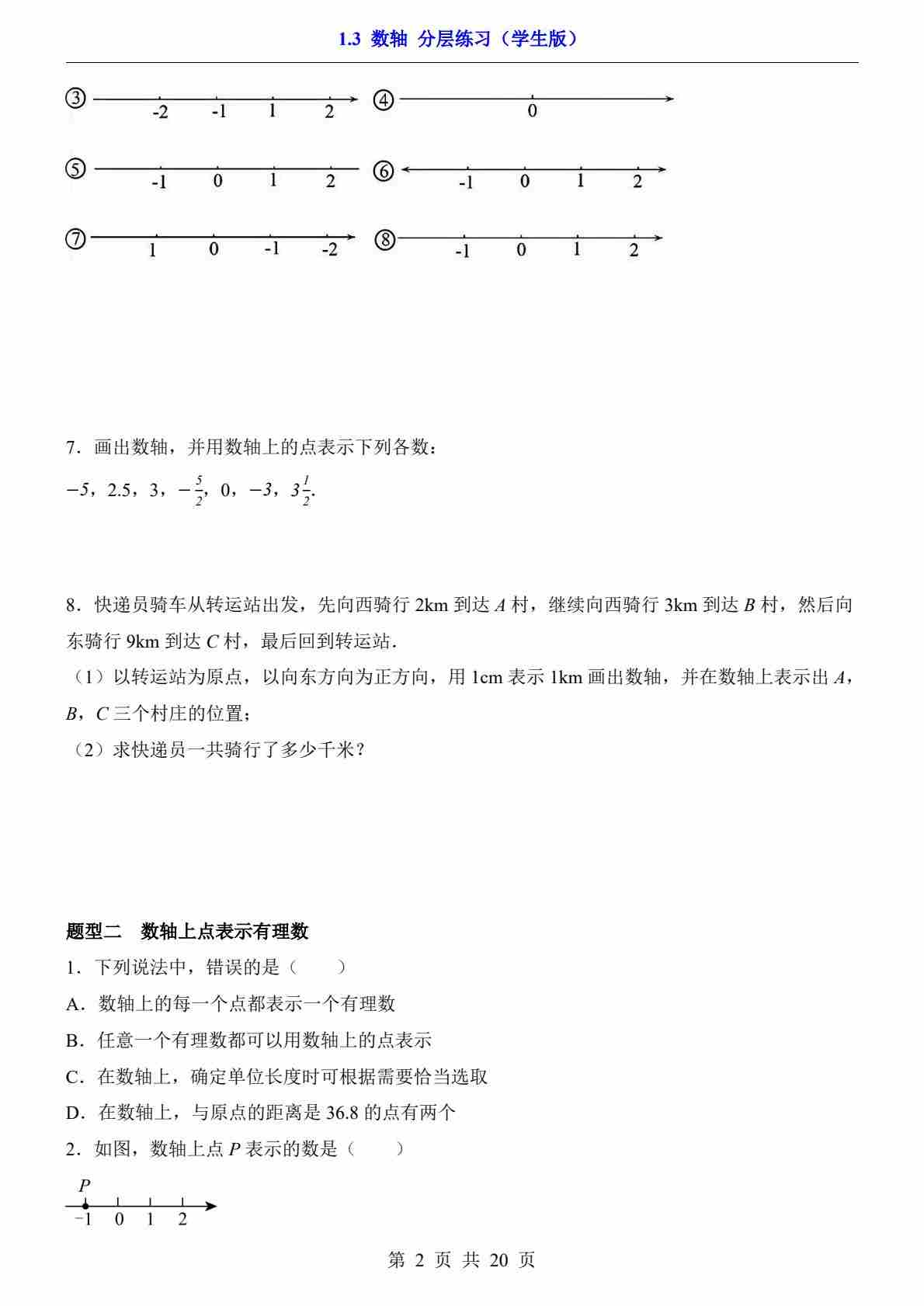 首页 > 全部 > 一课一练 > 1.3 数轴---(分层练习)