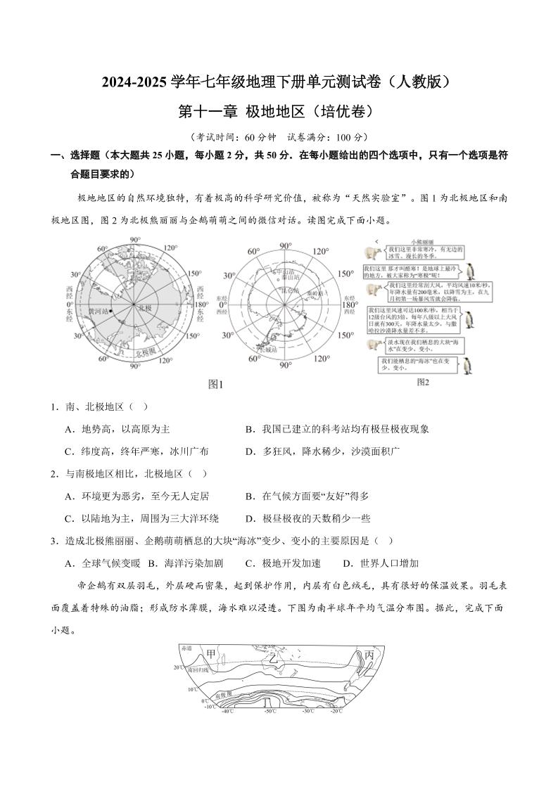 首页 > 全部 > 单元培优卷 > 第十一章 极地地区【A卷·培优卷】(原卷版)