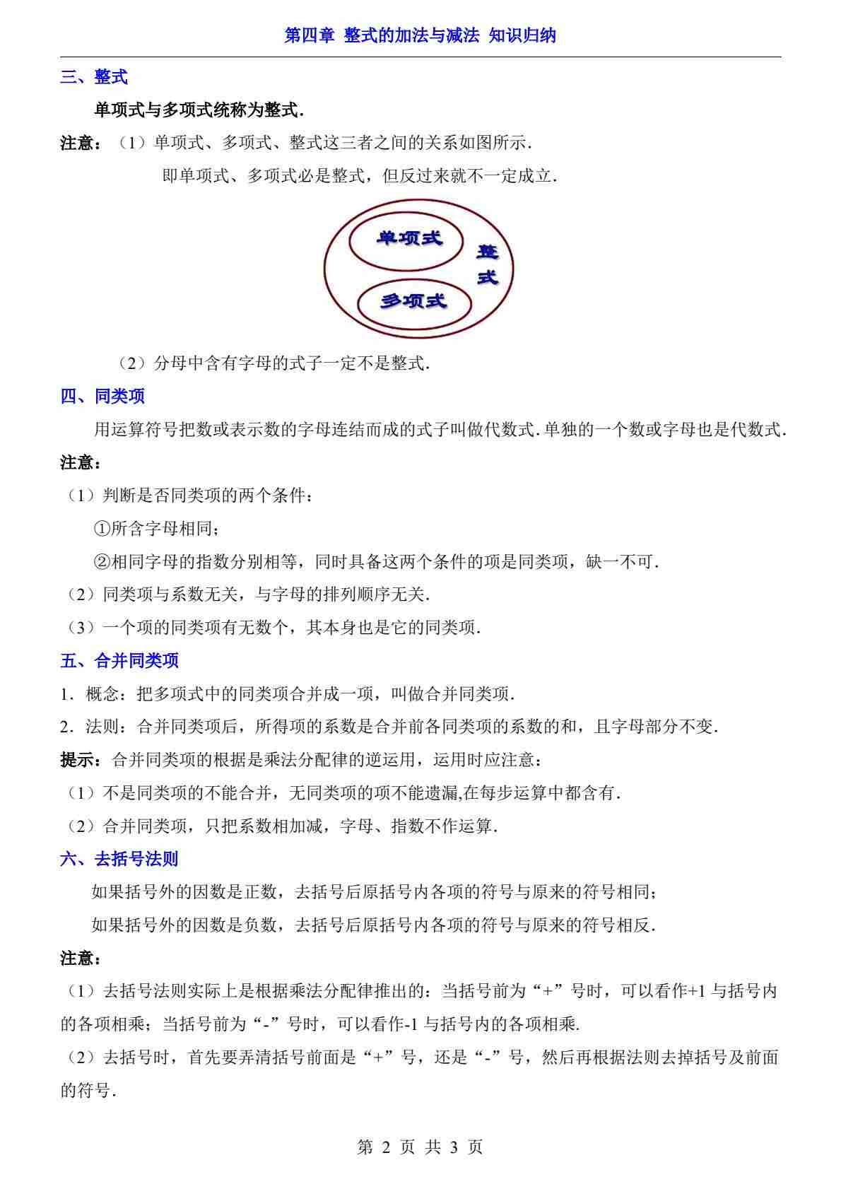 首页 > 全部 > 知识梳理 > 第4章 整式的加法与减法(知识归纳)