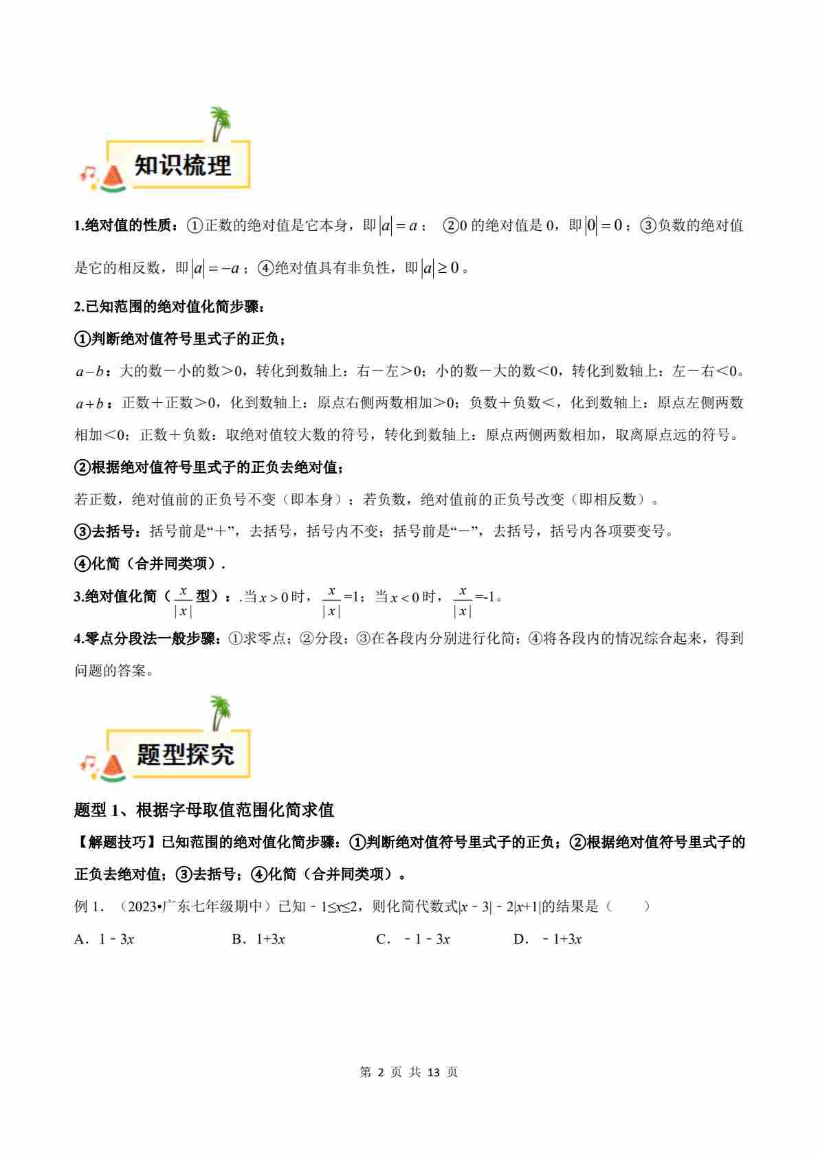 首页 > 全部 > 压轴题 > 重难点02 绝对值的化简与绝对值方程 专项讲练(原卷版)