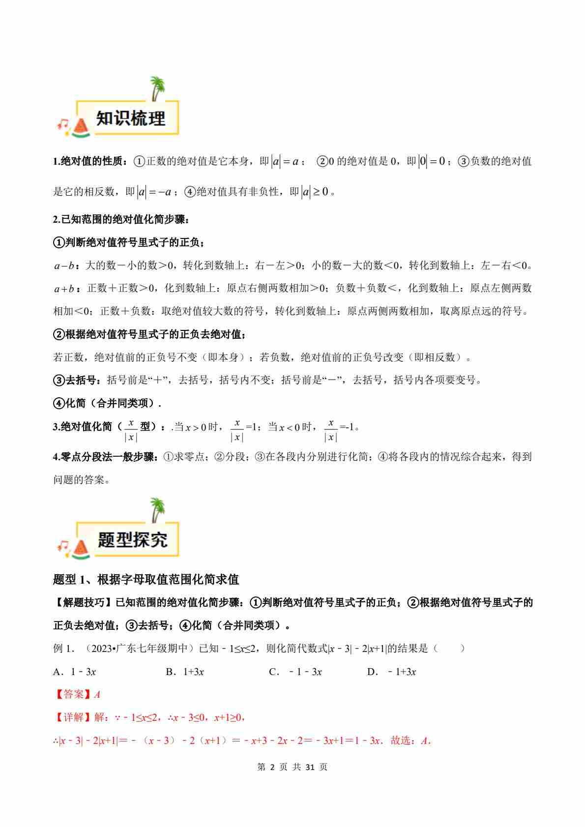 首页 > 全部 > 压轴题 > 重难点02 绝对值的化简与绝对值方程 专项讲练(解析版)