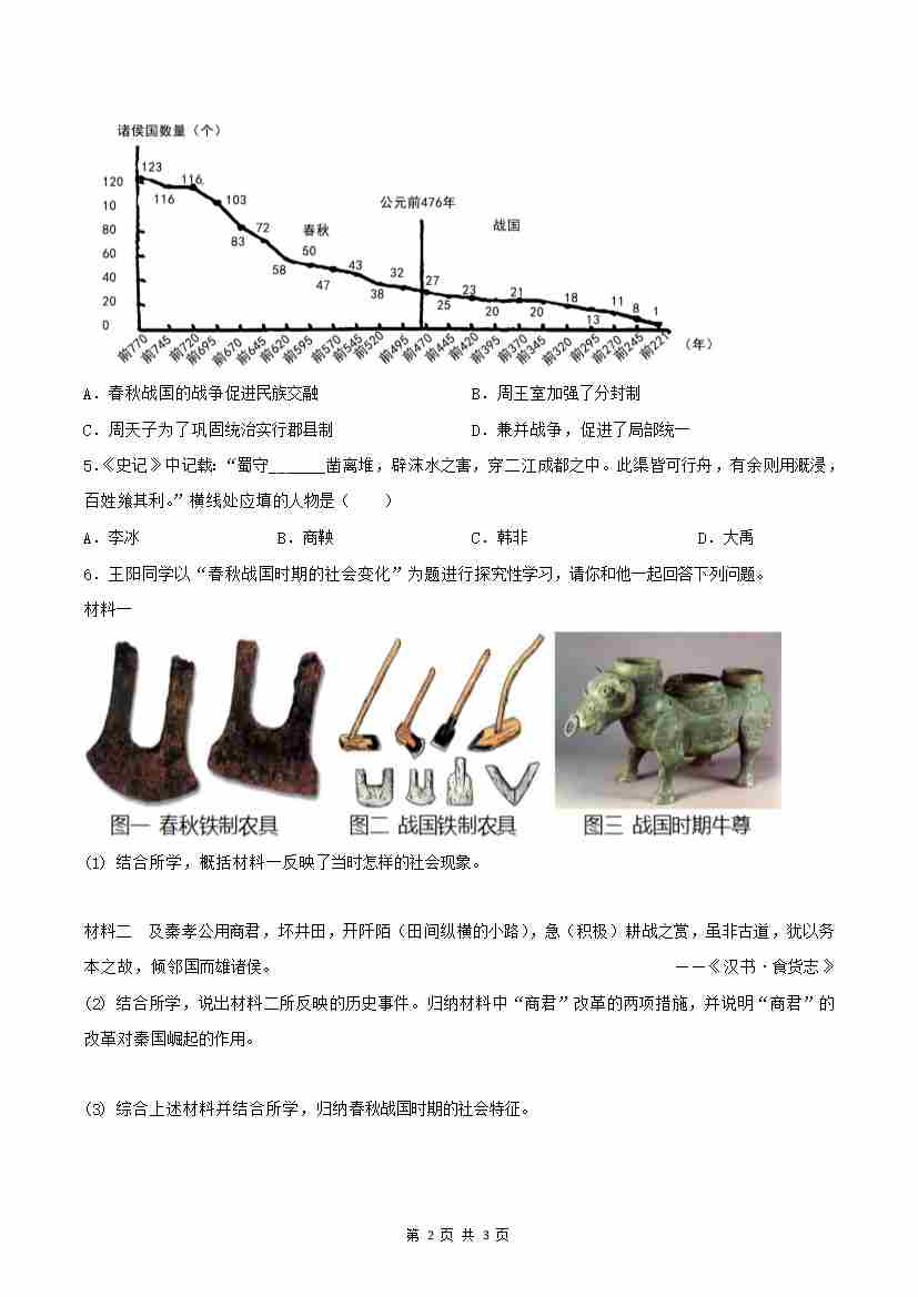 首页 > 全部 > 分层作业 > 第6课 战国时期的社会变革(分层作业)(原卷版)