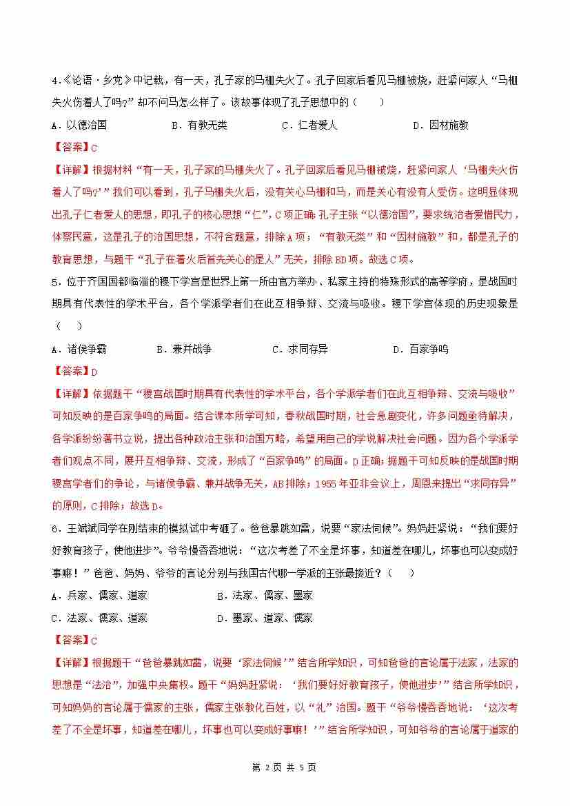 首页 > 全部 > 分层作业 > 第7课 百家争鸣(分层作业)(解析版)