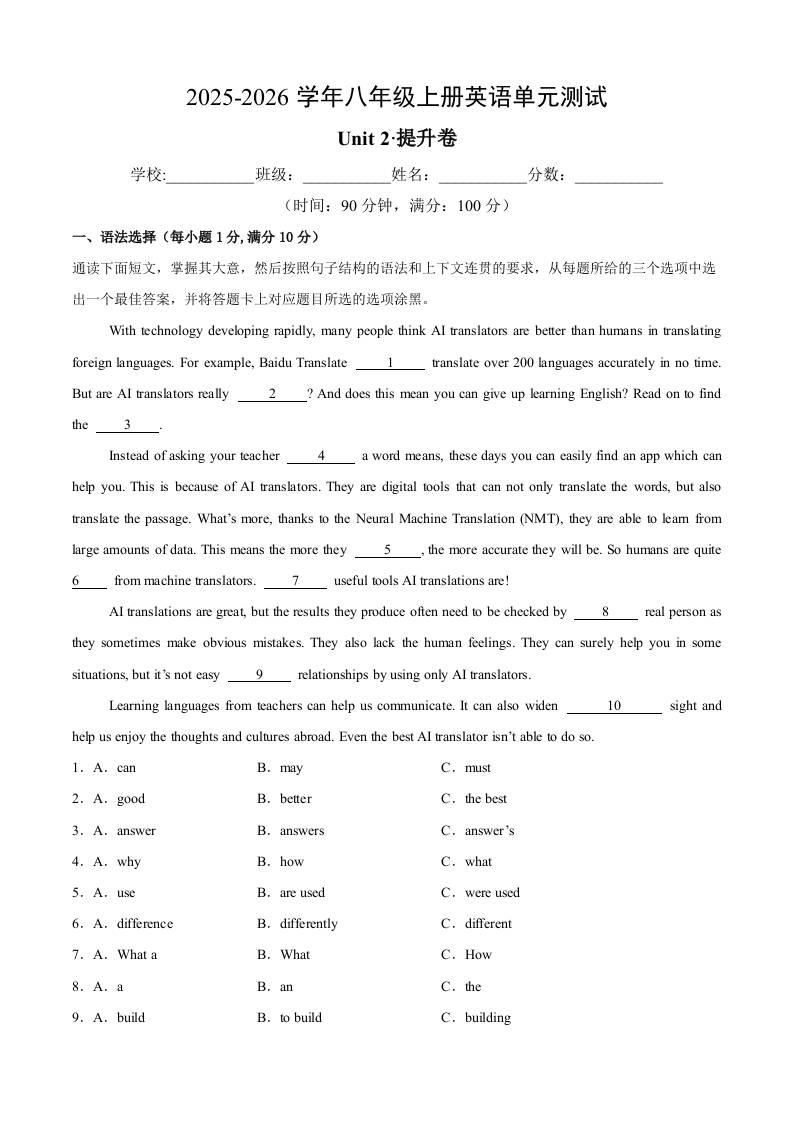 首页 > 全部 > 单元提升卷 > Unit 2 Digital life(单元测试·提升卷)(解析版)