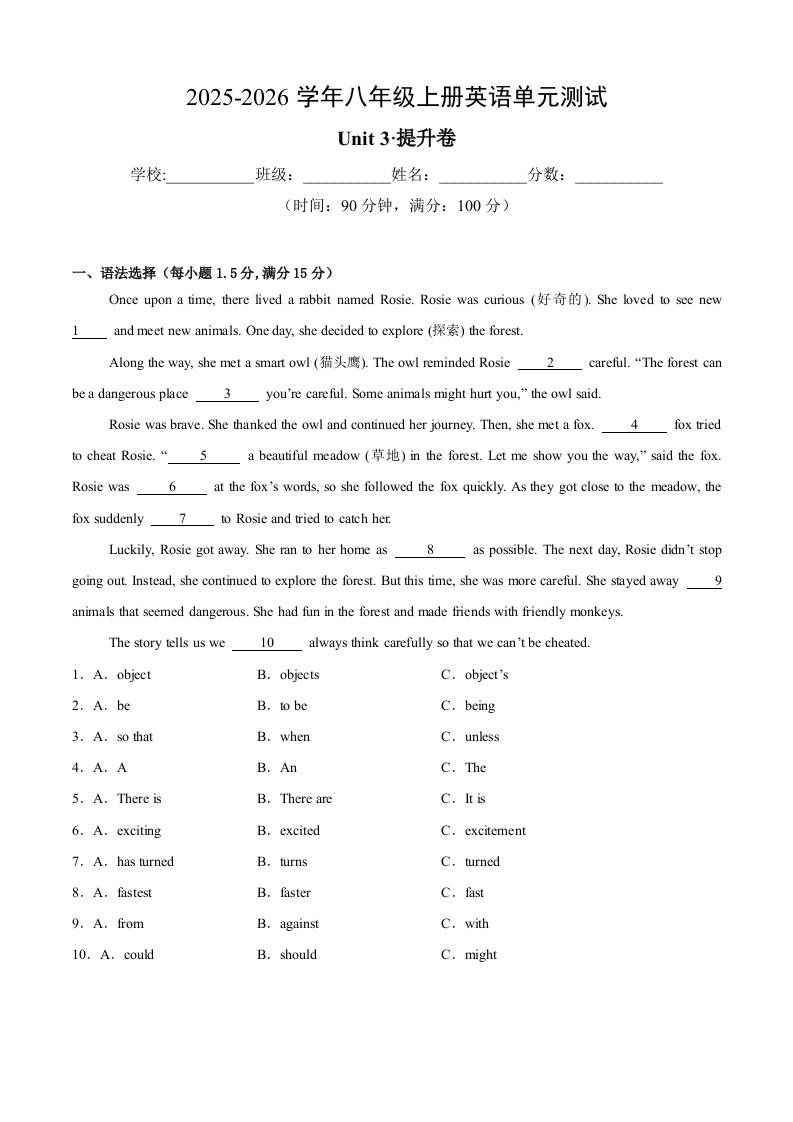 首页 > 全部 > 单元提升卷 > Unit 3 Curious minds(单元测试·提升卷)(考试版A4)