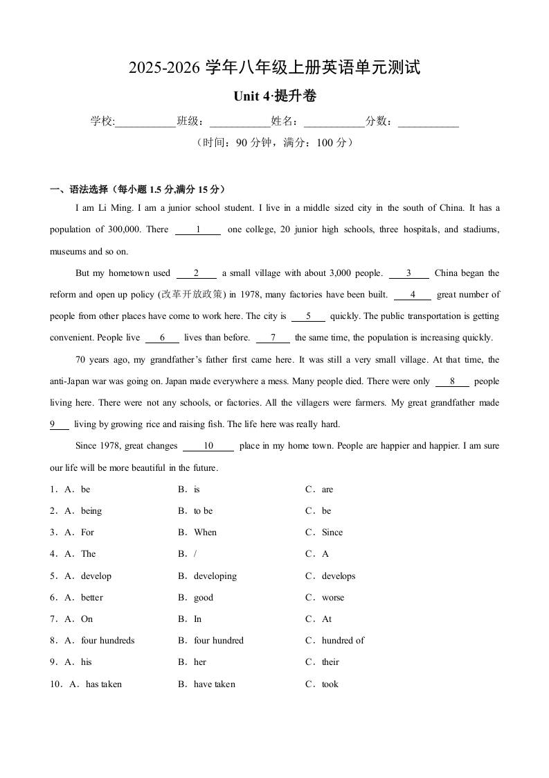 首页 > 全部 > 单元提升卷 > Unit 4 Then and now(单元测试·提升卷)(解析版)
