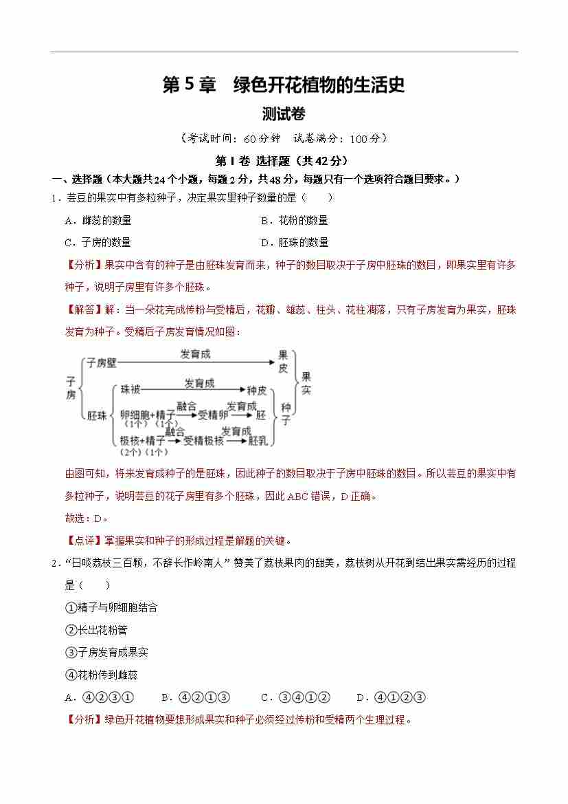 首页 > 全部 > 单元检测 > 第5章 绿色开花植物的生活史【单元卷·测试卷】(解析版)-七年级上册生物(新北师大版)