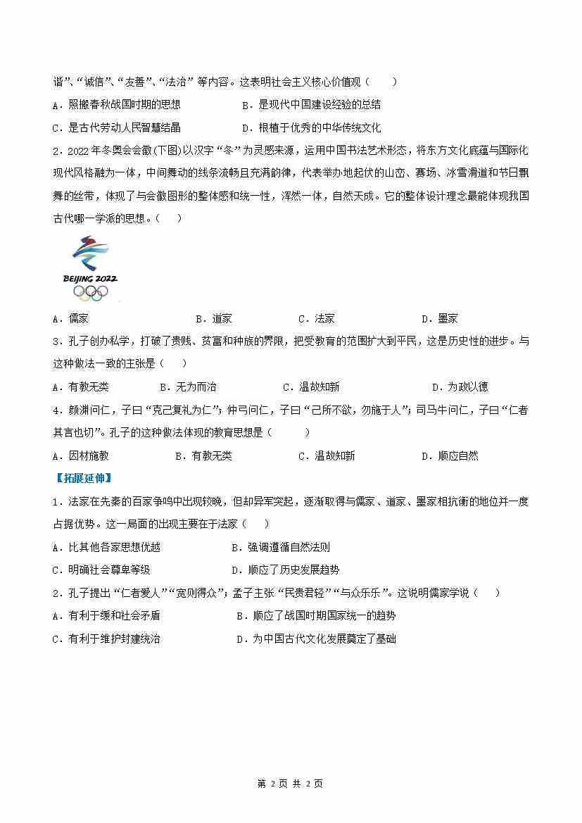 首页 > 全部 > 分层作业 > 第7课 百家争鸣(分层作业)(原卷版)