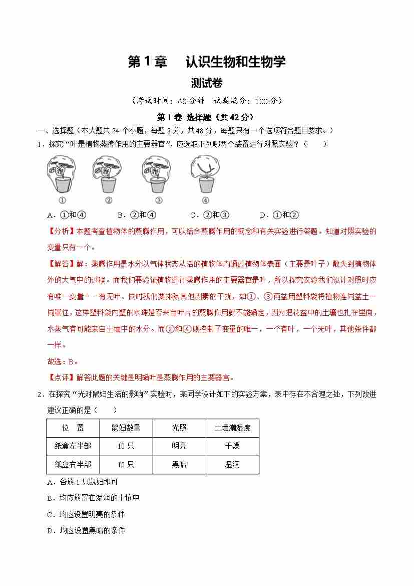 首页 > 全部 > 单元检测 > 第1章 认识生物和生物学【单元卷·测试卷】(解析版)-七年级上册生物(新北师大版)