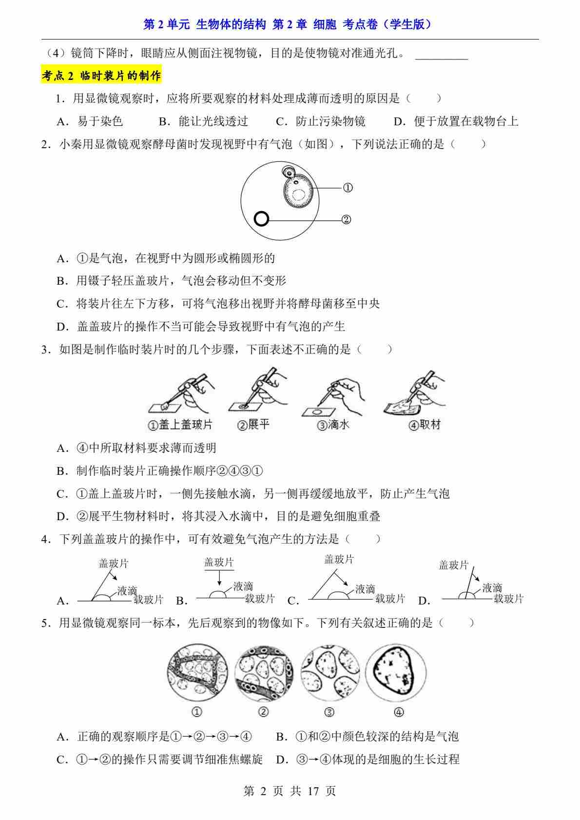 第2单元 第2章 细胞(考点卷)