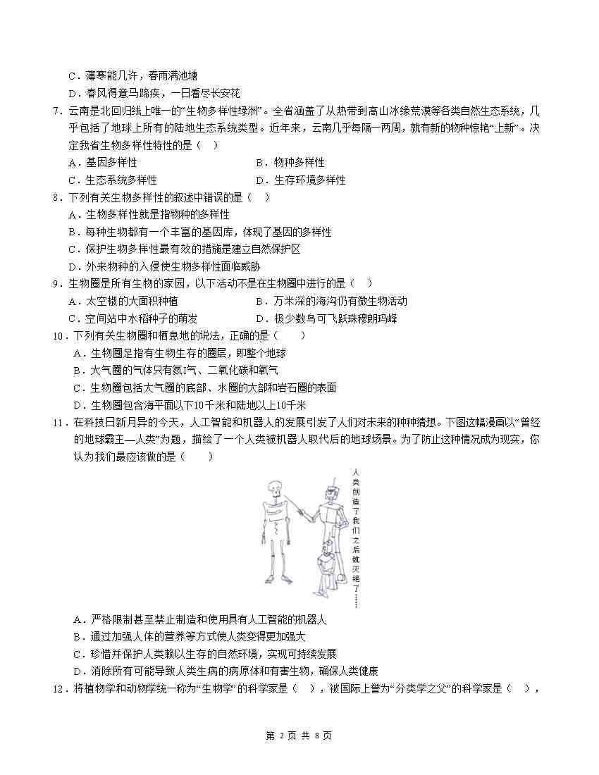 首页 > 全部 > 第一次月考 > 七年级生物第一次月考卷(A4考试版)【测试范围:七上第1-2章】(北师大版2024)