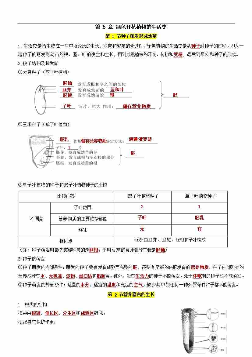 首页 > 全部 > 考点清单 > 第5章 绿色开花植物的生活史【速记清单】(解析版)-七年级上册生物(新北师大版)