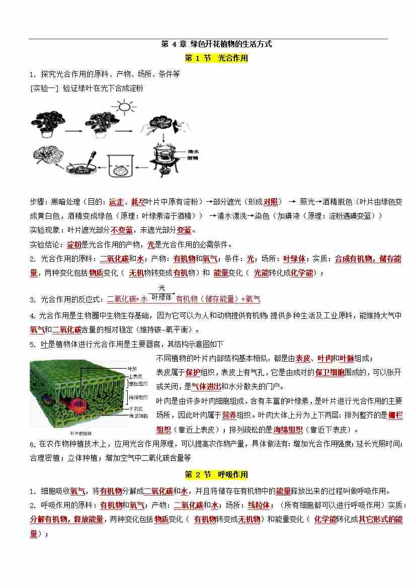 首页 > 全部 > 考点清单 > 第4章 绿色开花植物的生活方式【速记清单】(解析版)-七年级上册生物(新北师大版)