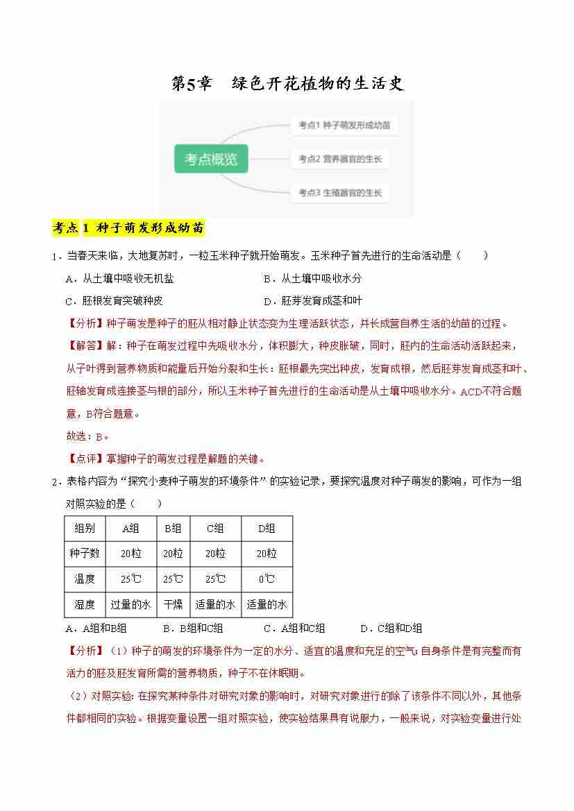 首页 > 全部 > 考点提升卷 > 第5章 绿色开花植物的生活史【单元卷·考点卷】(解析版)-七年级上册生物(新北师大版)