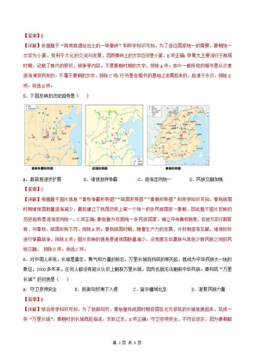 首页 > 全部 > 分层作业 > 第9课 秦统一中国(分层作业)(解析版)
