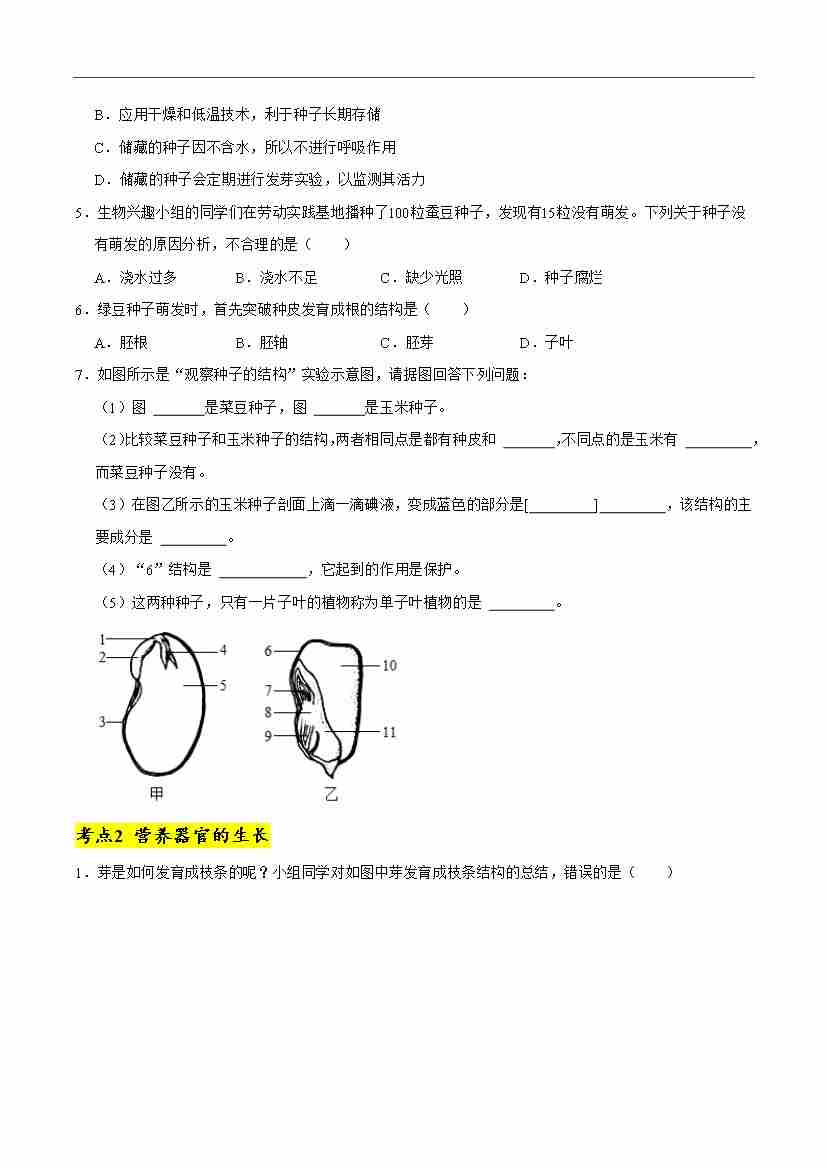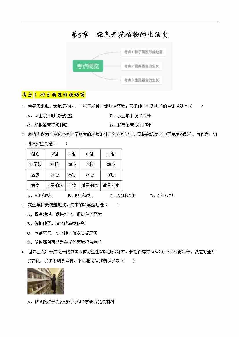 第5章 绿色开花植物的生活史【单元卷·考点卷】(原卷版)-七年级上册生物(新北师大版)
