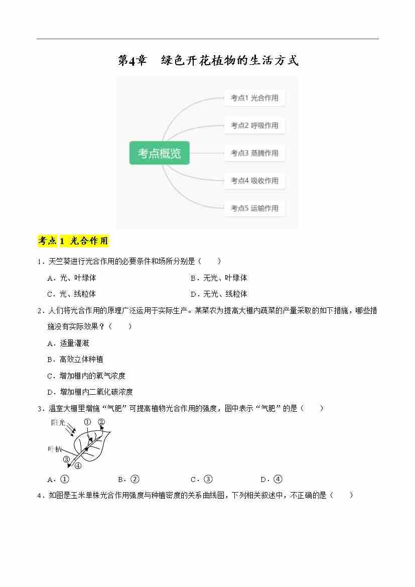 首页 > 全部 > 考点提升卷 > 第4章 绿色开花植物的生活方式【单元卷·考点卷】(原卷版)-七年级上册生物(新北师大版)