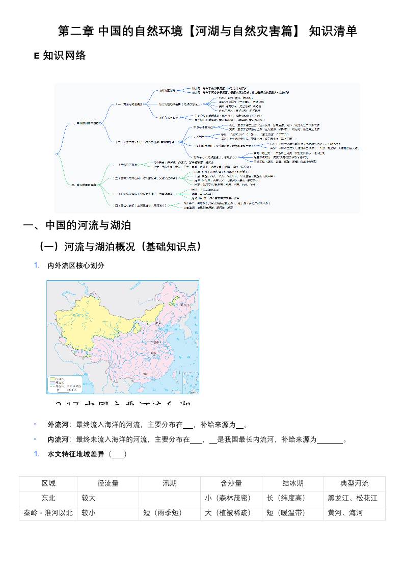 第二章 中国河流湖泊与自然灾害(知识清单·下划线挖空版)