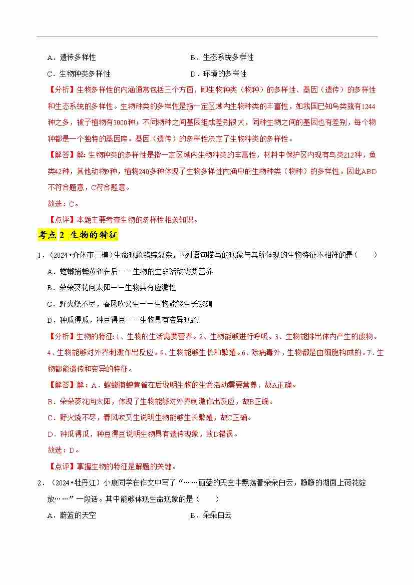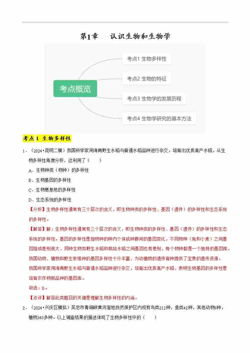 首页 > 全部 > 考点提升卷 > 第1章 认识生物和生物学【单元卷·考点卷】(解析版)-七年级上册生物(新北师大版)
