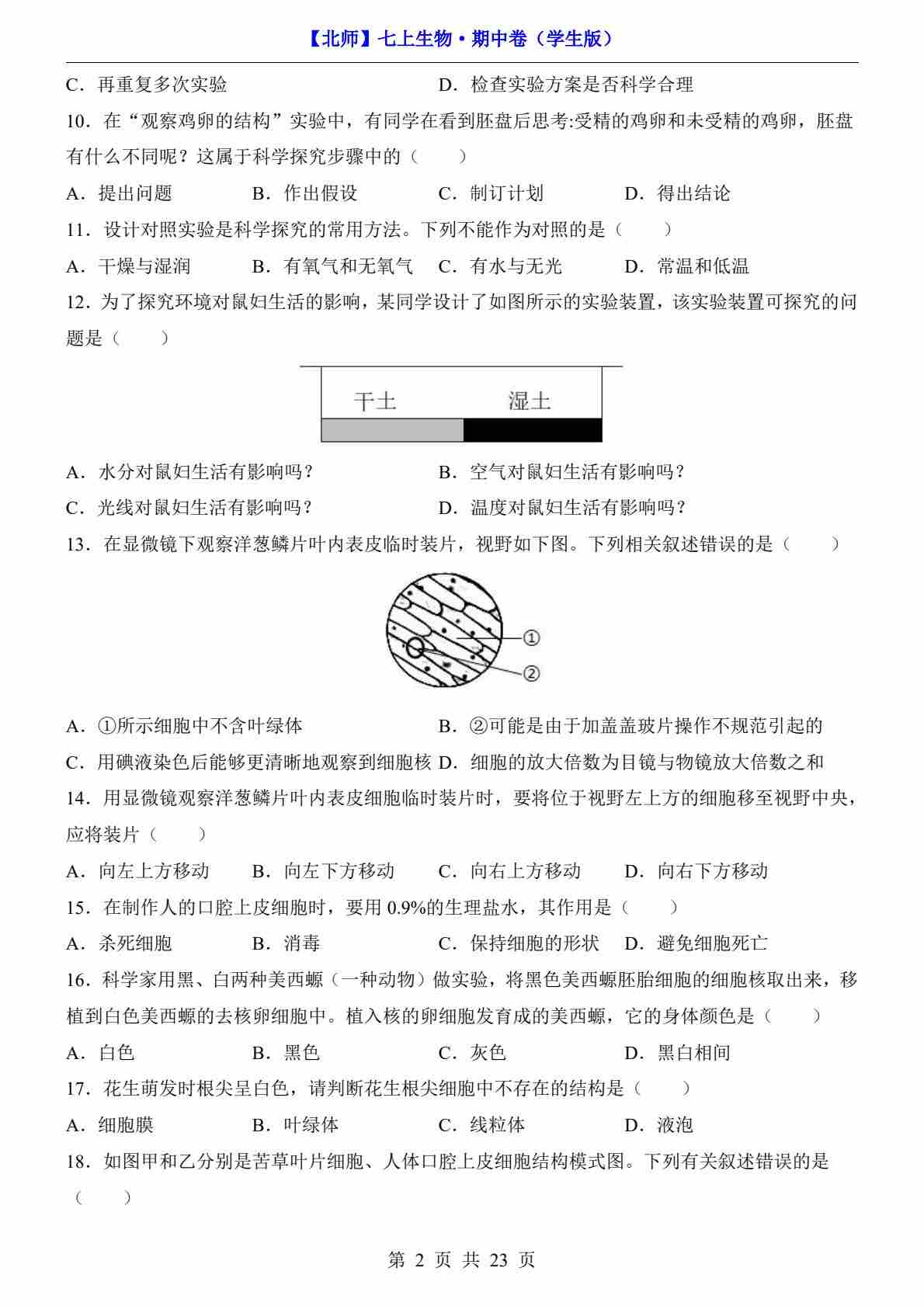 首页 > 全部 > 期中试卷 > 【北师】7上生物期中卷【第1-3章】