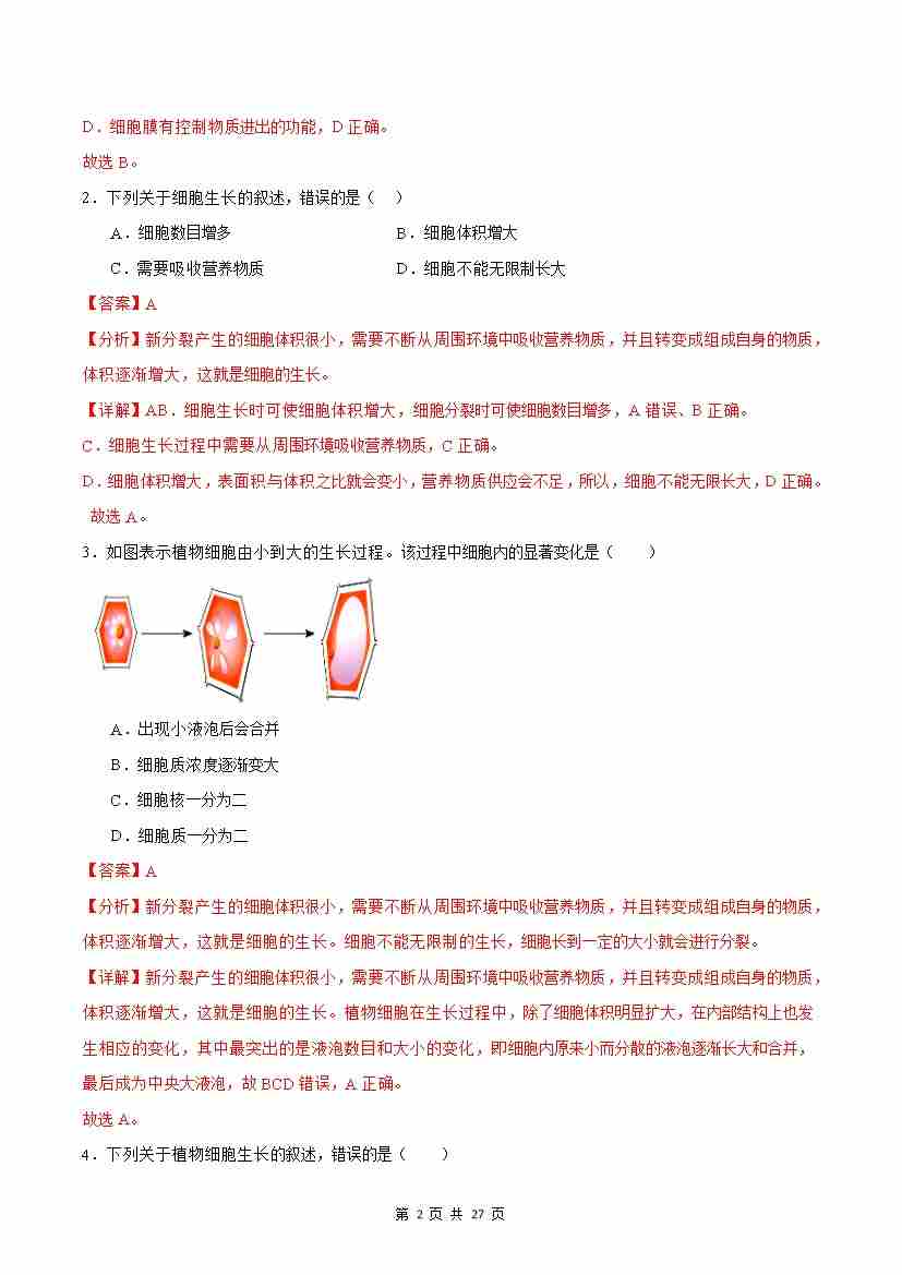 首页 > 全部 > 期中专项 > 第3章 生物体的结构层次(考题猜想50题)(解析版)docx