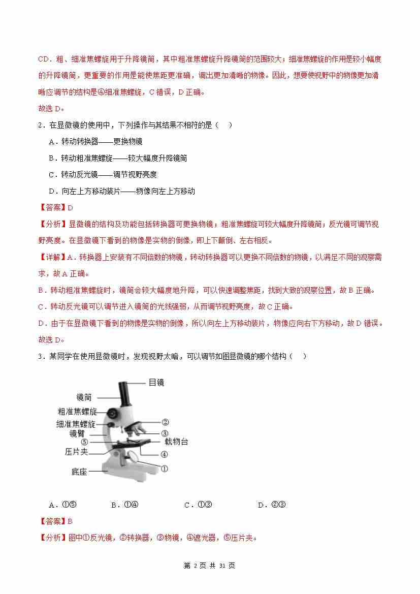 首页 > 全部 > 期中专项 > 第2章 细胞(考题猜想50题)(解析版)
