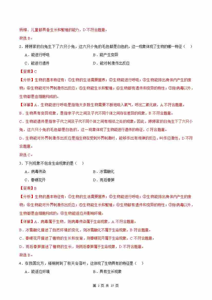 首页 > 全部 > 期中专项 > 第1章 认识生物和生物学(考题猜想50题)(解析版)