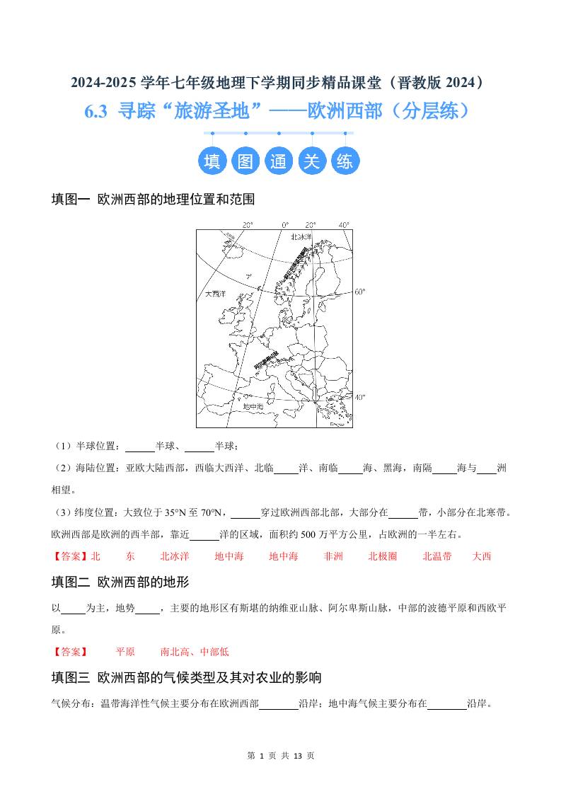 首页 > 全部 > 同步练习 > 6.3寻踪“旅游圣地”——欧洲西部(解析版)