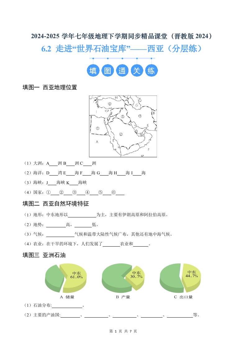 首页 > 全部 > 同步练习 > 6.2走进”世界石油宝库“——西亚(原卷版)