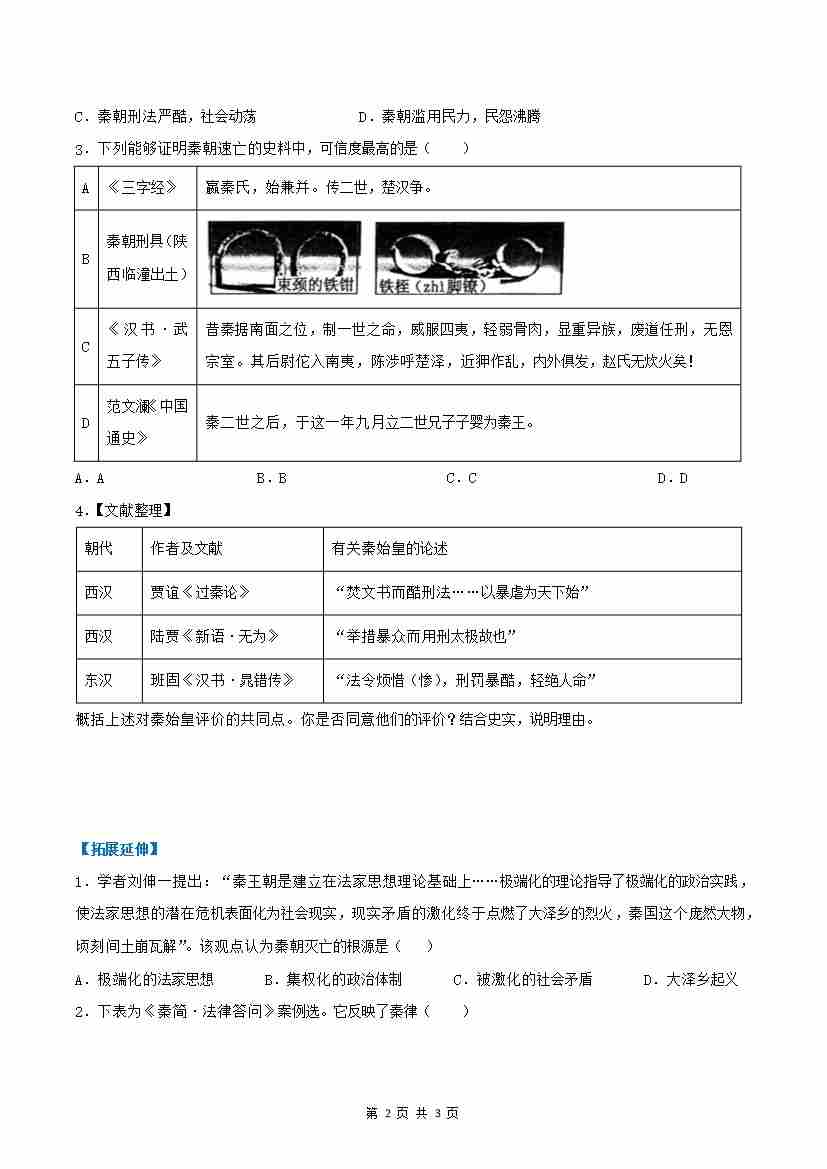 首页 > 全部 > 分层作业 > 第10课 秦末农民大起义(分层作业)(原卷版)