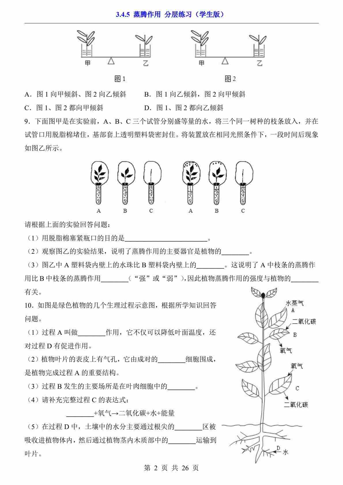 首页 > 全部 > 一课一练 > 3.4.5 蒸腾作用(分层练习)