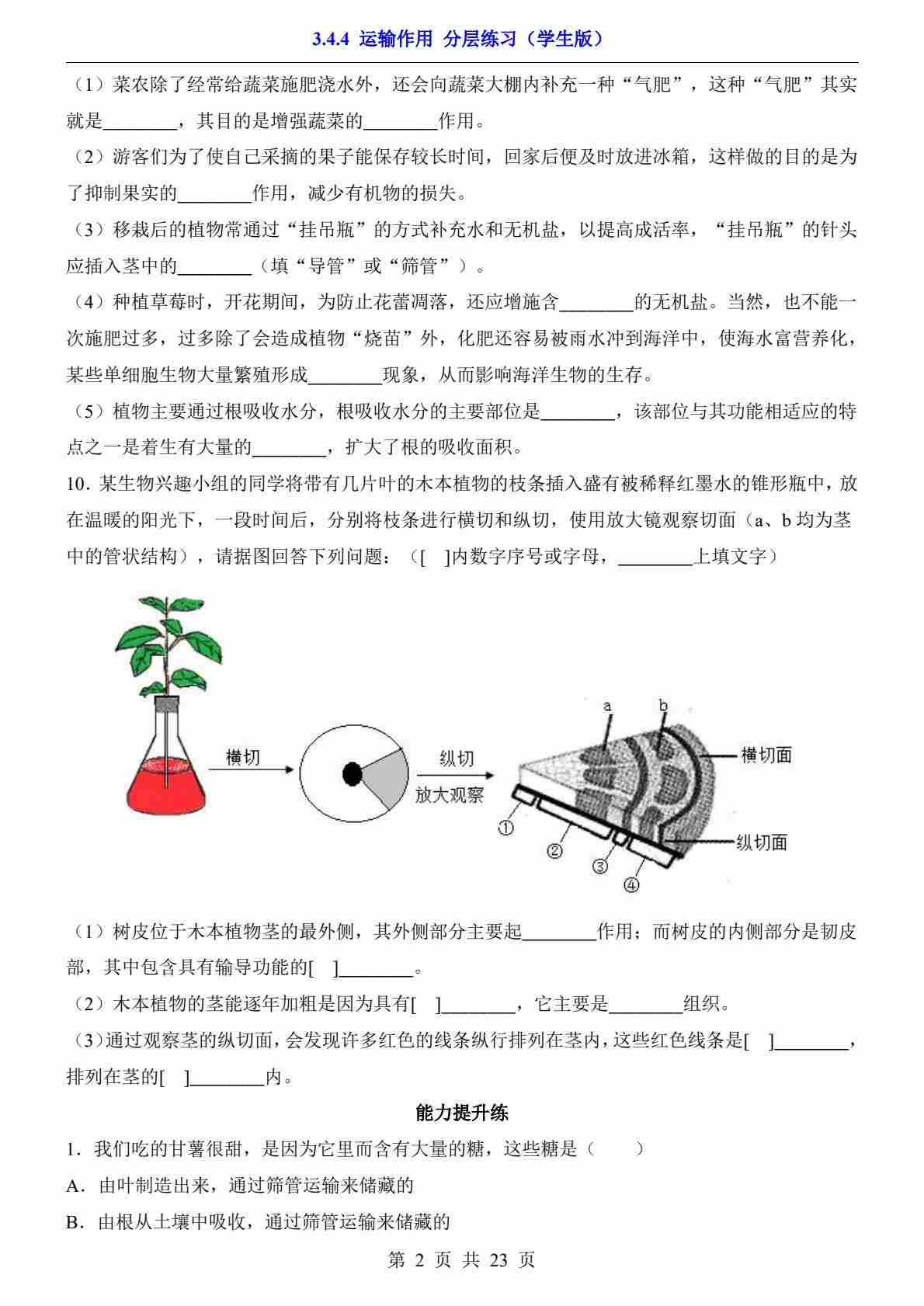 首页 > 全部 > 一课一练 > 3.4.4 运输作用(分层练习)
